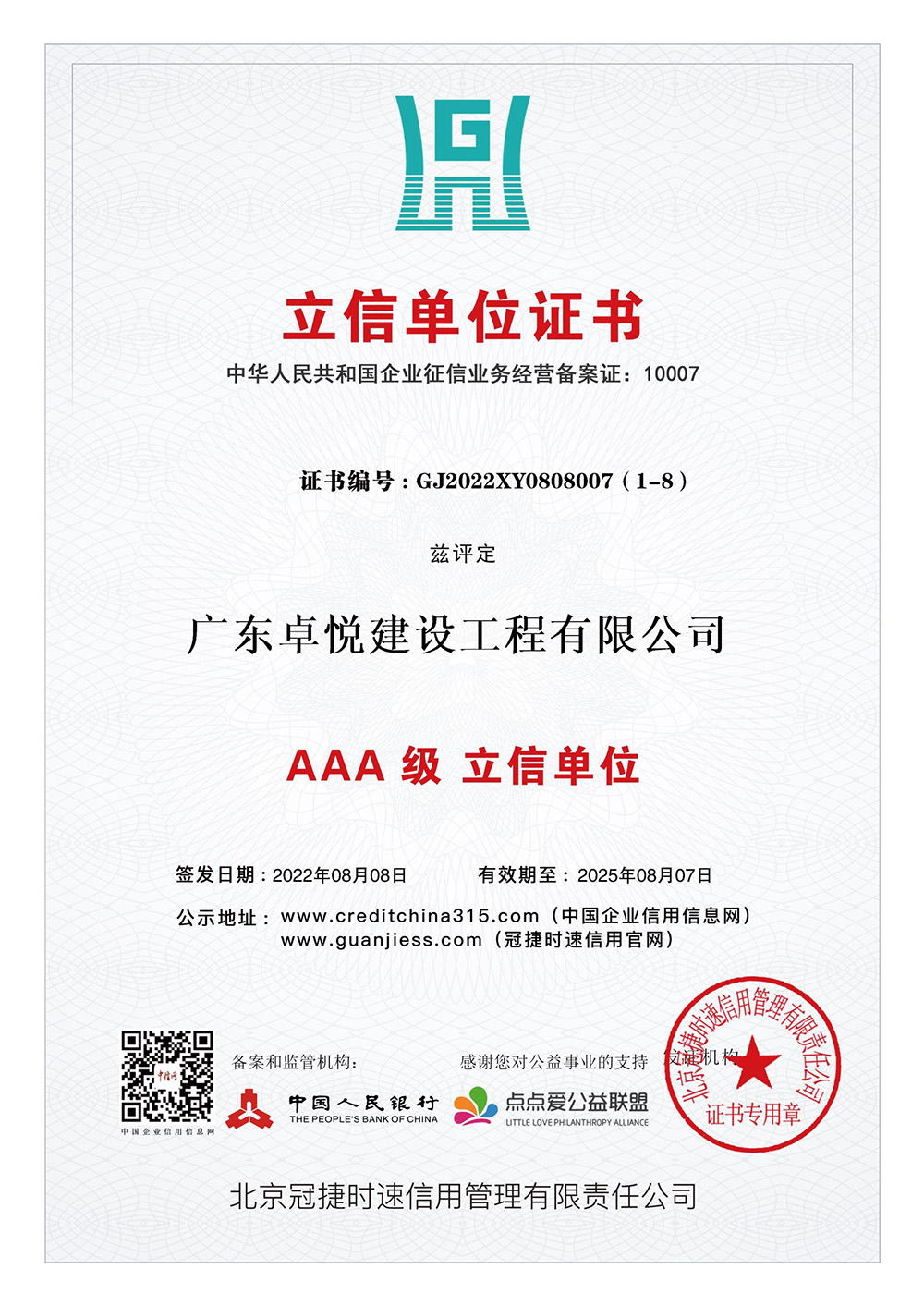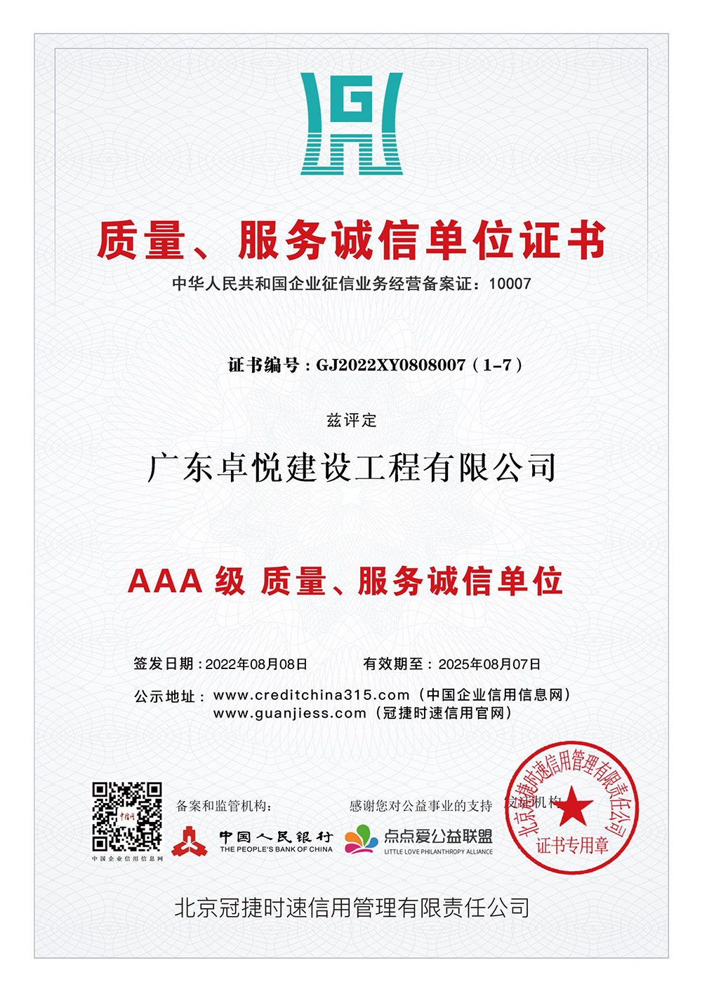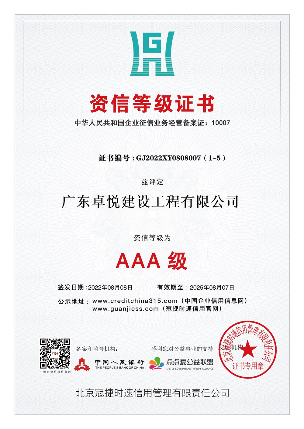 信用等级系列证书