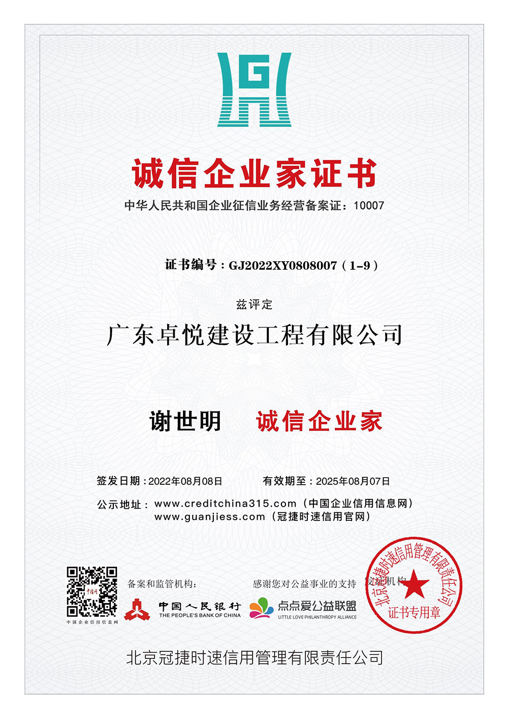 信用星级证书